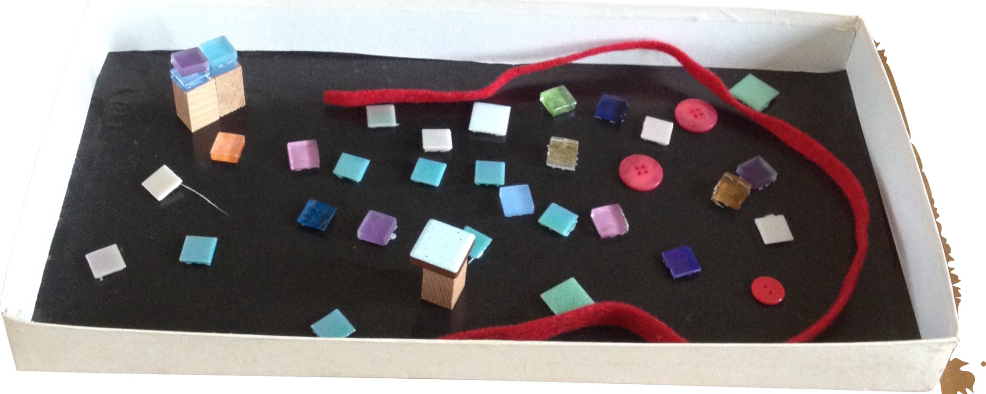 Questo gioco può essere definito gioco di composizione, e deriva da alcune buone pratiche che vengono proposte in molti contesti educativi italiani. Il gioco di composizione è facile da realizzare, divertente per i bambini e molto stimolante anche per l’educatrice o la maestra. Richiede un intervento di progettazione e cura dell’ambiente di grande soddisfazione estetica ed educativa per l’adulto, e per il bambino costituisce un prezioso stimolo all’attività intelligente. Ma cos’è esattamente il gioco di composizione? Lo si può definire molto semplicemente, come la possibilità, per i bambini, di accedere a un angolo attrezzato con materiali suddivisi per tipologia, accanto ad alcuni cestini e delle scatole o dei vassoi. In questa foto si può vedere una bambina che ha portato sul tavolo di lavoro un cestino carico di piccoli oggetti e una scatola di cartone con il fondo foderato, ed è intenta a comporre gli oggetti nella scatola. I materiali adatti allo scopo sono i più svariati, vanno bene lacci, nastri, bottoni, scarti di falegnameria, perle, graffette, tappi di plastica e coperchi, custodie dei rullini fotografici, conchiglie, legnetti e bastoncini, insomma qualsiasi cosa che possa essere utilizzata per dare vita ad una composizione che abbia un senso estetico ed euristico nella visione del bambino. Saranno sufficienti un armadio, un mobile o uno scaffale ampio, per ospitare i vassoi e i cestini accanto ai contenitori degli oggetti raccolti in insiemi ordinati (tutti i lacci insieme, ad esempio, o tutte le conchiglie, o tutte le perle, ecc.). I bambini poi lavoreranno ad un tavolo, ognuno impegnato con il suo vassoio, senza ostacolare i momenti di affiatato lavoro in comune.