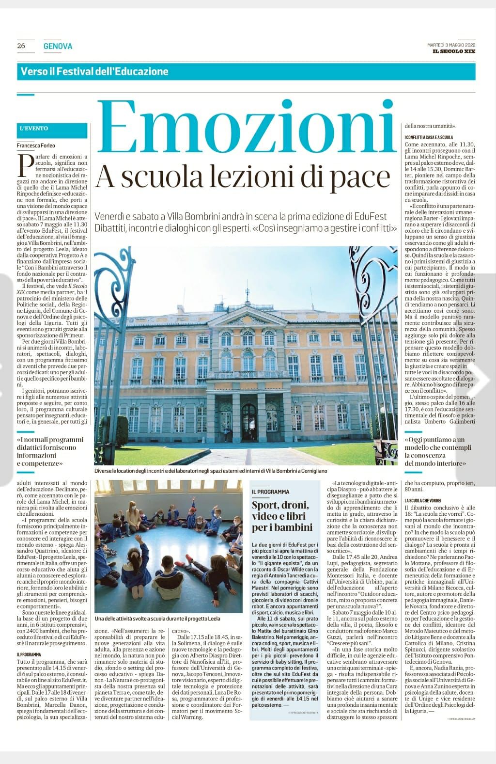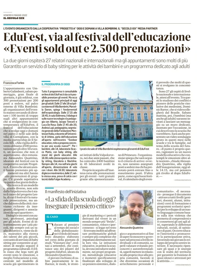 GENOVA VILLA BOMBRINI 6 / 7 MAGGIO 2022 – 2 GIORNI PER IMMAGINARE INSIEME IL FUTURO DELL’EDUCAZIONE, LASCIANDOSI ISPIRARE DA OSPITI D’ECCEZIONE E ARTISTI