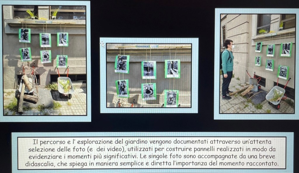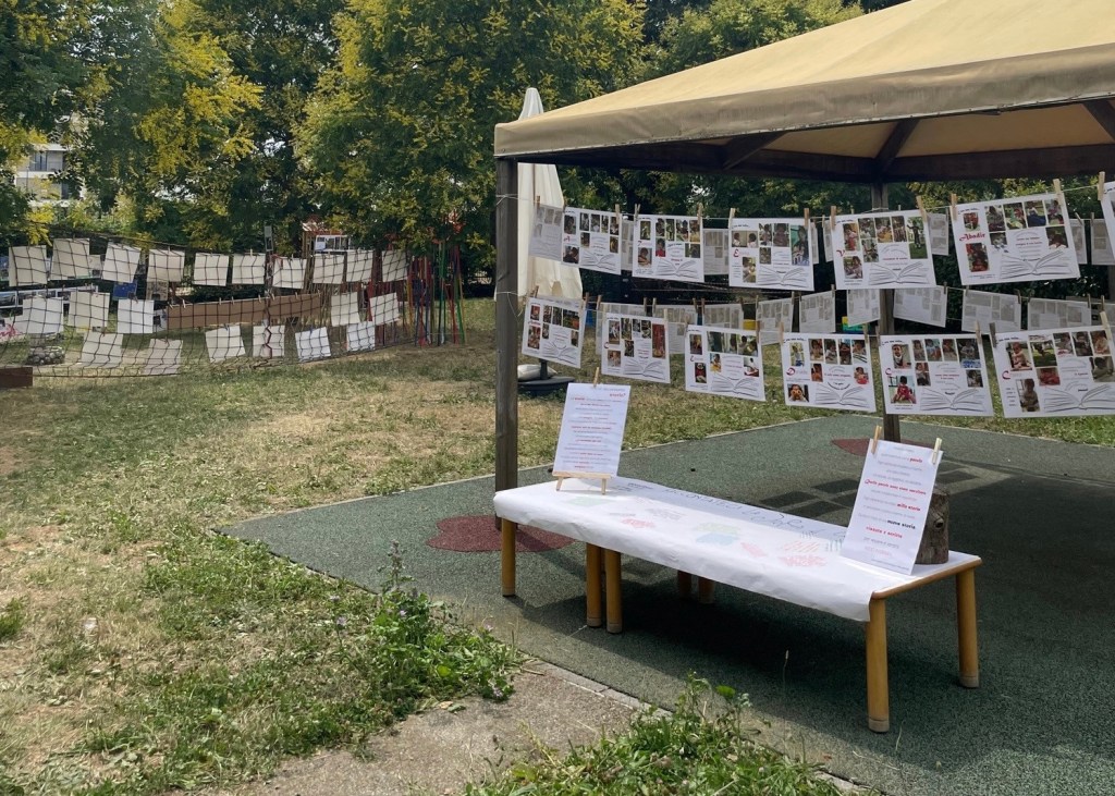 E’ stata particolarmente apprezzata la modalità documentativa esterna al nido attraverso l’uso del filo e delle cancellate quale strumento privilegiato di comunicazione fra il “dentro” e il “fuori”, tecnica sperimentata durante un percorso di approfondimento sul tema con la formatrice Manuela Cecotti, prezioso aiuto nell’impostazione della mostra.